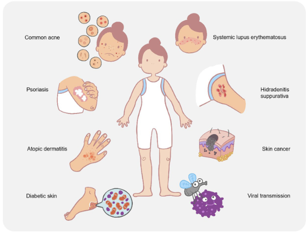 皮膚作為身體最大的器官,是預(yù)防疾病的屏障,同時(shí)定植著各種有益的細(xì)菌。皮膚微生物菌群在人類健康和疾病中發(fā)揮著重要作用。人體皮膚屏障的破壞、共生菌群與病原體之間的不平衡會(huì)導(dǎo)致皮膚疾病,甚至系統(tǒng)性疾病。