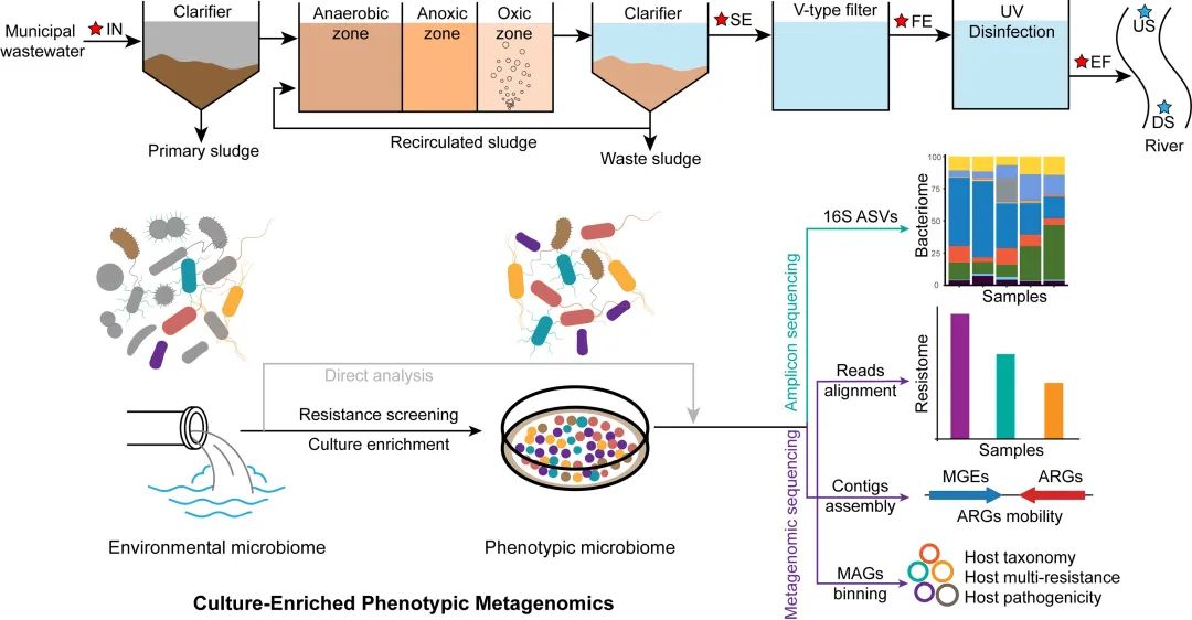 圖1. 本研究提出了表型宏基因組方法學(xué)并應(yīng)用于污水環(huán)境靶標(biāo)耐藥組檢測(cè)。